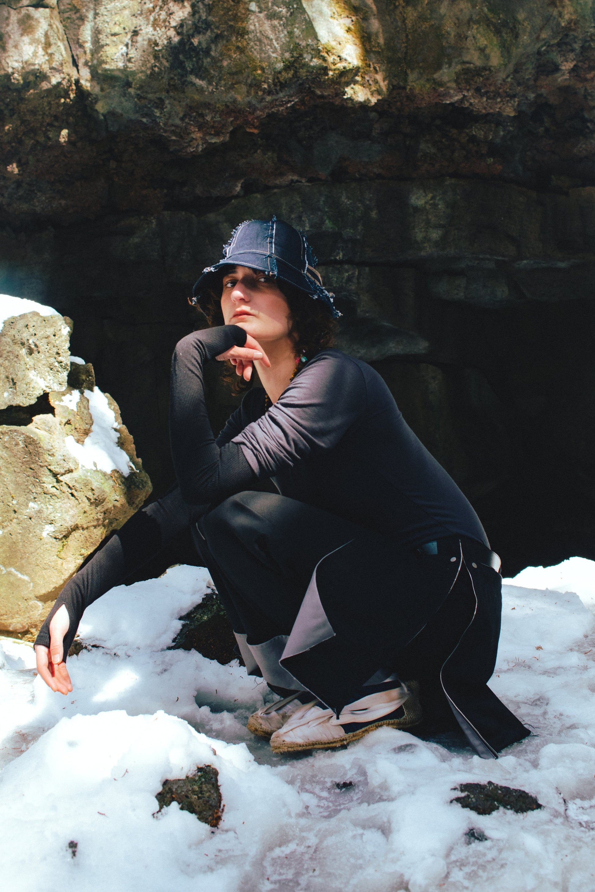鳩の帰巣本能に着目し制作した、ストレッチの効いたレイヤードトップス。