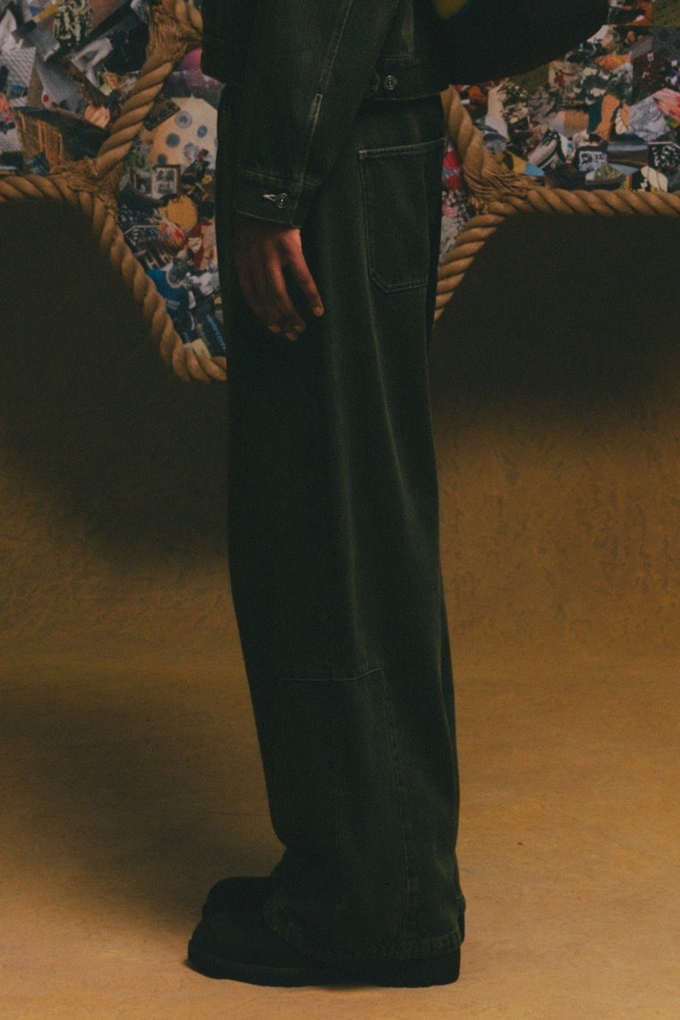 ストレートでありながら大胆にワイドなシルエットのデニムパンツ。